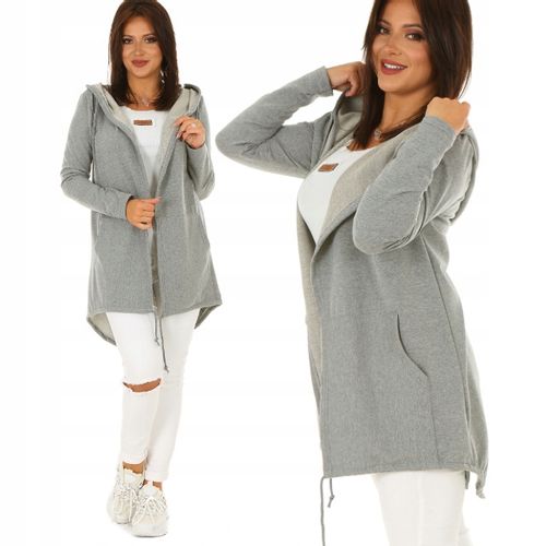 Dzięki uniwersalnemu rozmiarowi i luźnemu krojem, ten kardigan z kapturem doskonale dopasuje się do różnych sylwetek. Dodatkowo, ozdobny sznurek pozwala na regulację i podkreślenie talii, zapewniając doskonałe dopasowanie.