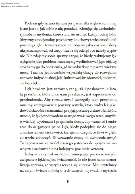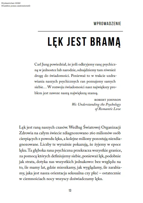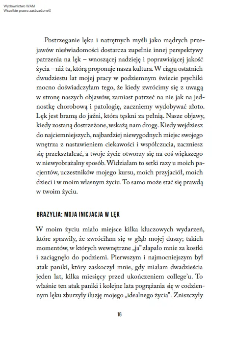 "Mądrość lęku" to jasno oświetlona ścieżka prowadząca do prawdy o tym, kim jesteśmy, oraz drogowskaz, jak poruszać się przez życie, gdy paraliżuje nas lęk, depresja, przytłoczenie czy poczucie beznadziei.