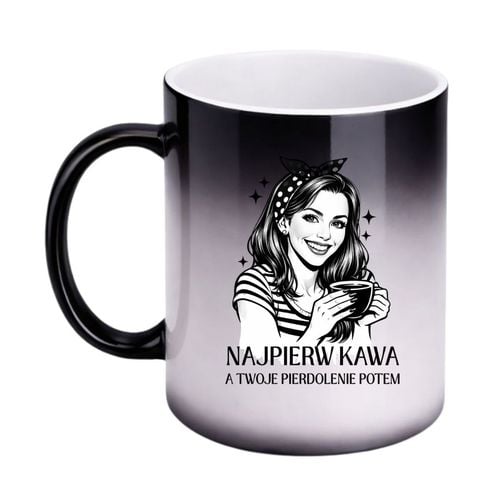 Kubek bez cenzury „Najpierw kawa, a twoje pierdolenie potem” to śmieszny kubek dla kobiety, która kocha kawę, ma dystans do ludzi i lubi mocne teksty bez filtra. Ten wzór świetnie sprawdza się jako prezent dla niej z humorem, bo łączy bardzo życiową puentę z kobiecą grafiką i codzienną użytecznością. To kubek dla kawoszki, który od razu mówi wszystko: najpierw kofeina, potem cała reszta świata.