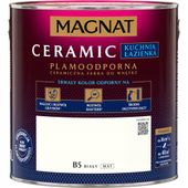 Ta wysokiej jakości farba MAGNAT CERAMIC KUCHNIA & ŁAZIENKA 2,5L w kolorze B5 Biały (stara nazwa: B5 Czysta biel/biały) wyróżnia się nie tylko czystym, trwałym wykończeniem, ale także wyjątkowymi właściwościami hydrofobowymi. Tworzy powłokę o gwarantowanej plamoodporności, która chroni przed plamami i tłuszczami, zapewniając długotrwałą świeżość i łatwość utrzymania czystości w pomieszczeniach o zwiększonej wilgotności.