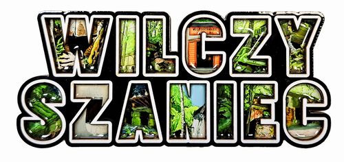 Magnes epoksydowy, trójwymiarowy - Wilczy Szaniec. Magnes przedstawiający widok na byłą kwaterę Adolfa Hitlera - Wilczy Szaniec. Magnes składa się z 13 rysunków z Wilczego Szańca wpisanych w słowo WILCZY SZANIEC.