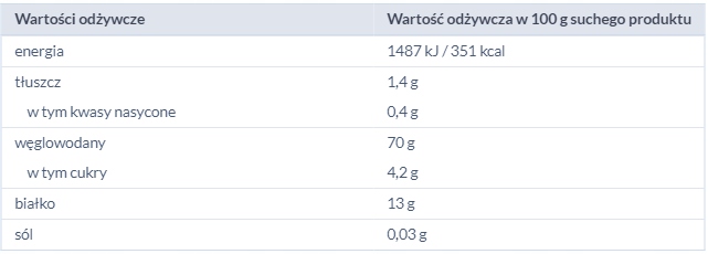 Wartości odżywcze w 100 g ugotowanego produktu: