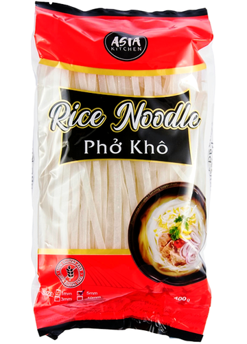 Wietnamski makaron ryżowy w postaci szerszych wstążek 5 mm marki Asia Kitchen.