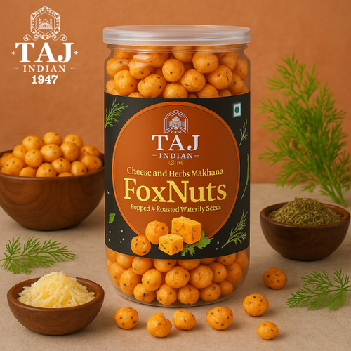 Indulge in the rich, spicy flavour of our Cheese & Herbs Makhana. These light and crunchy fox nuts are perfectly roasted and seasoned with a delicious blend of creamy cheese and aromatic herbs. A flavourful and nutritious snack from Taj Indian 1947.