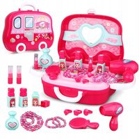 Toaletka , make-up dla dziewczynki w walizce w kształcie pojazdu.