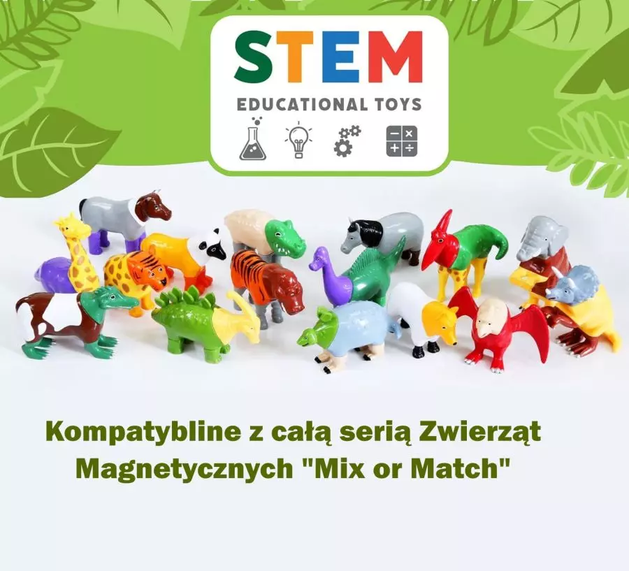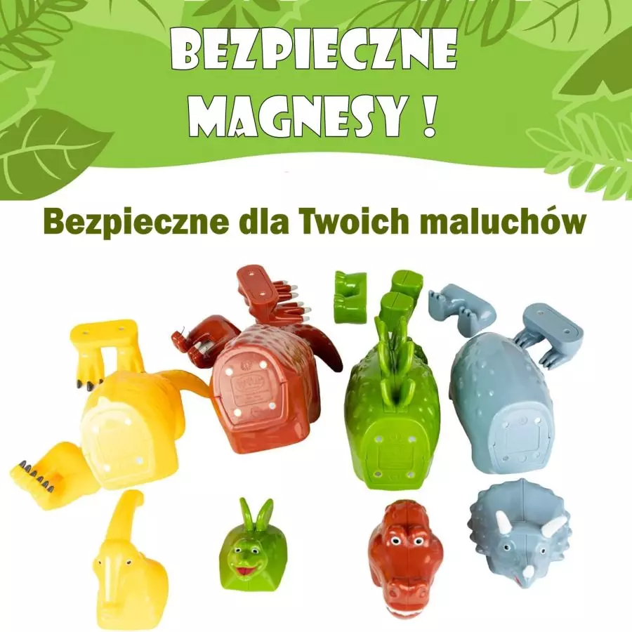 Wielokrotnie nagradzany zestaw zapewnia nieograniczoną zabawę małym dzieciom! Uśmiech, zadowolenie i podekscytowanie są tym czym powinna inspirować każda zabawka. Ten zestaw dinozaurów zawiera Brontozaura, Spinozaura, Ankylozaura i Pterodaktyla. Bezpośrednie i pośrednie korzyści płynące z nauki przez zabawę trwają całe życie! Magnetyczna zabawa dla najmłodszych: Zbuduj cztery dołączone do zestawu zwierzęta z silnymi połączeniami magnetycznymi lub połącz i dopasuj elementy, aby stworzyć nowe, własne zwierzęta. Wszystkie zestawy z tej linii są wymienne, poszerzając zabawę! Bezpieczna zabawa magnetyczna: Nasz magnetyczny system blokowania sprawia, że montaż jest szybki, a trwałe, bezpieczne elementy są zaprojektowane tak, aby wytrzymać lata zabawy i nie pękają ani nie odsłaniają magnesów. Twórz niewidziane wcześniej zwierzęta: Co otrzymasz, gdy połączysz tygrysa, krokodyla i żyrafę? Jak nazwałbyś to zwierzę? Co by zjadł? Jak by to chodziło? Zachwycaj się tymi inspirującymi wyobraźnię zestawami! Idealny dla małych rączek: Duże elementy są bezpieczne dla najmłodszych, a składanie ich to świetna zabawa dla dzieci w wieku 2 lat i starszych. Łatwo łączą się ze sobą za pomocą połączeń magnetycznych, tworząc szalone zwierzę! Nauka przez zabawę: MalBlo MAGNETIC zapewnia edukację, nagradzane zabawki, które zachęcają chłopców i dziewczynki do nauki, kreatywności, interakcji społecznych i pomysłowej zabawy. • Mieszanie lub dopasowanie elementów zwierząt • Rozwój motoryki drobnej • Umiejętności komunikacyjne i społeczne • Rozpoznawanie kształtu • Rozpoznawanie kolorów • Rozwój słownictwa i języka • Kreatywna zabawa • Zabawa konstrukcyjna