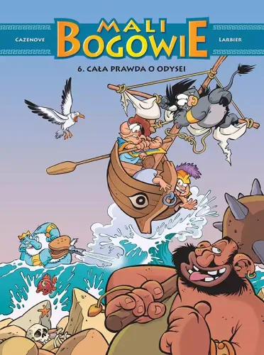 Szósty album szalonych i śmiesznych przygód kandydatów na bogów i herosów starożytnego Olimpu. Odyseusz przyjmuje wyzwanie Posejdona: jeśli zdoła odbyć daleką wyprawę, bóg mórz uczyni go największym żeglarzem wszech czasów. Tak rozpoczyna się Odyseja – niebezpieczna podróż po wodach pełnych niebezpieczeństw i potworów. Odyseusz wyrusza w towarzystwie przyjaciela Tauruska, ale przecież ich znamy – nie są geniuszami ani dzielnymi herosami... Na szczęście będzie ich wspierać Atena, początkująca bogini wojny. Autorami historii o psotnych istotach z mitów są scenarzysta Christophe Cazenove, znany w Polsce między innymi z bestsellerowej serii „Sisters”, oraz rysownik Philippe Larbier, który stworzył ilustracje do takich humorystycznych opowieści jak „Chats, chats, chats” czy „Nina” oraz scenariusz kryminalnego cyklu dla dzieci „Les Enigmes de Léa”.