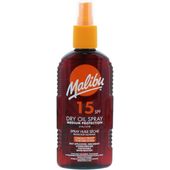 Malibu Dry Oil Spray SPF15 to lekki, nietłusty olejek do opalania w wygodnej formie sprayu, który zapewnia średnią ochronę przed promieniowaniem UVA i UVB.