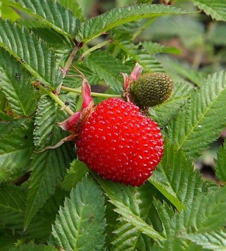 Malinotruskawa jest niskim krzewem owocowym, o kulistym pokroju, pochodzącym z Japonii. W naszych warunkach klimatycznych osiąga około 60cm wysokości.