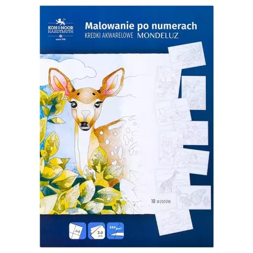 Kolorowanka inspirowana jest naturą, przedstawia wizerunki zwierząt w ich naturalnym środowisku. Przeznaczona jest do kolorowania kredkami akwarelowymi Mondeluz 24 kolory (ref. 3718), ale można także użyć innych kredek. Pracę wykonujemy techniką klasyczną - kolorując kredkami, bądź akwarelową - rozmywając wcześniej pokolorowane powierzchnie za pomocą pędzelka z wodą. Dzięki temu można uzyskać efekt obrazu akwarelowego. Malowanie po numerach doskonale sprawdzi się dla dzieci w wieku szkolnym, ale może być także inspiracją dla początkujących artystów.
