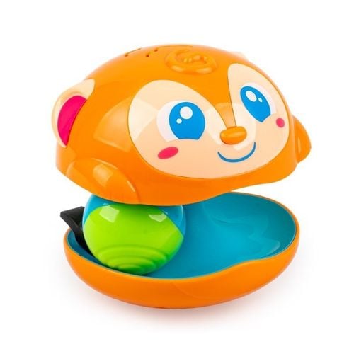 Zabawny zwierzak chybocze się na swej małpiej podstawce, wydając przy tym dźwięk dzwoneczka! W środku zabawki znajduje się dwukolorowa piłeczka, która także wiruje dookoła, razem z małpką. Zakręć zabawką, słuchaj i obserwuj, aby odkrywać zależności przyczynowo - skutkowe, bawiąc się przy tym w najlepsze.