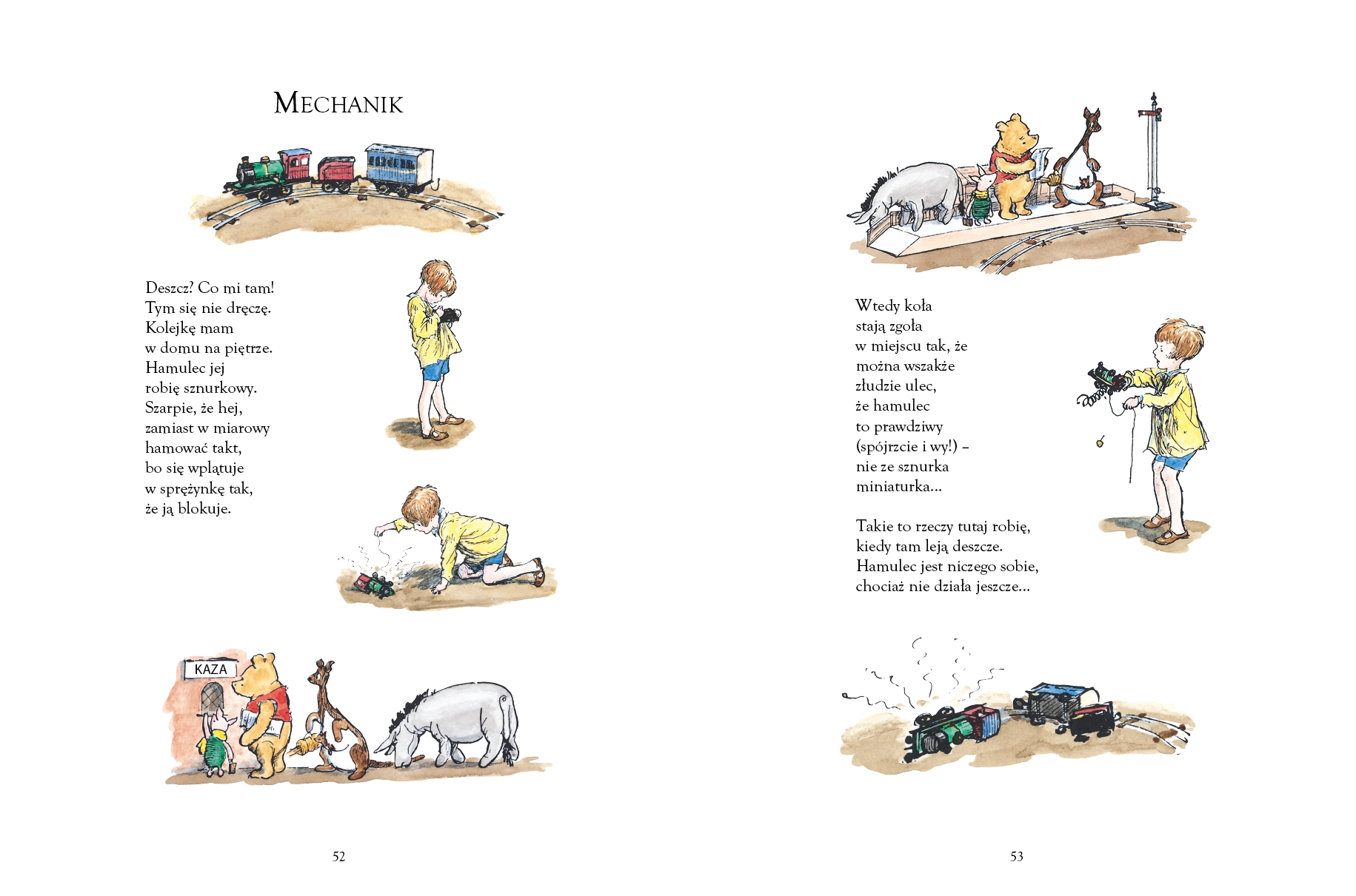 Tom wierszyków A.A. Milne’a przetłumaczonych przez Michała Rusinka z ilustracjami E.H. Sheparda. Młodzi czytelnicy znajdą tu zabawne rymowanki na tematy, które zajmują sześciolatki – o potrzebie samotności, byciu grzecznym, o pestkach wiśni, jaskrach, czarnej kurze, wietrze na wzgórzu, o zasypianiu i… kichaniu. Klasyka dziecięcej literatury.
