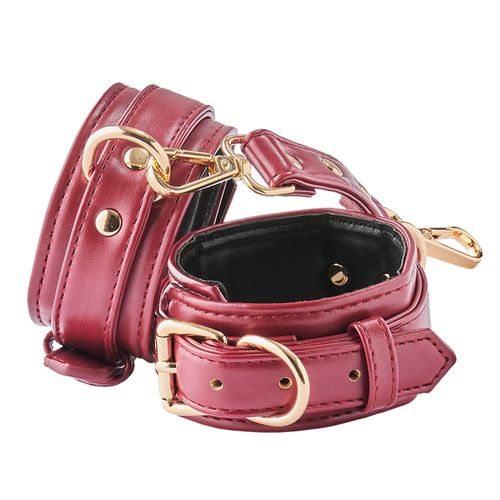 Eleganckie mankiety na kostki z ekoskóry z ozdobnymi złotymi elementami Anklecuff Red