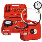W zestawie znajduje się bogaty zestaw adapterów i kształtek, które umożliwiają dopasowanie się do większości układów wtrysku paliwa. Całość jest przechowywana w poręcznej walizce, ułatwiającej transport i organizację.