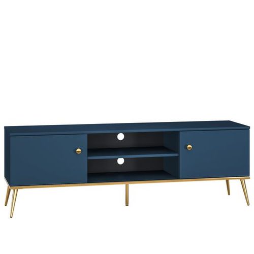Odkryj elegancję i styl, które wnosi MARINE 05 - Szafka RTV do Twojego wnętrza! Wykonana w pięknym, głębokim błękicie, wzbogacona złotymi akcentami, idealnie łączy w sobie nowoczesność z klasycznym urokiem, czyniąc ją idealnym wyborem dla wielbicieli stylu glamour.
