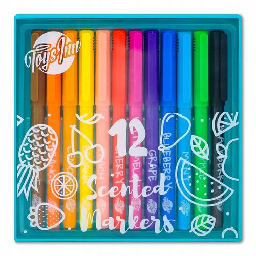 Kolory (i zapachy) markerów: cielisty (brzoskwinia), żółty (banan), ciemny żółty (cytryna), pomarańczowy (pomarańcz), czerwony (wiśnia), fuksja (arbuz), fioletowy (winogrona), ciemny niebieski (borówka), jasny niebieski (mięta), zielony (jabłko), brązowy (czekolada), czarny (jeżyna).