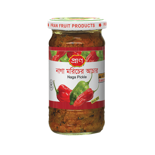 Naga chili, lokalnie znana jako Naga Mirch, to papryka chili uprawiana w północno-wschodnich Indiach i Bangladeszu. Jest to jedna z najostrzejszych znanych papryczek chili. Naga Pickle marki Pran to aromatyczne i ostre doświadczenie dla osób, które lubią bardzo ostre dania. Marynowane Naga Chilli serwowane są jako dodatek do dań kuchni Azjatyckiej. Naga Pickle Pran to połączenie papryczek naga, oleju, aromatycznych przypraw i tradycyjnej receptury. Każdy kęs to podróż przez intensywne smaki, które idealnie współgrają ze sobą, tworząc harmonię pikantnego, słodkiego i kwasowego doświadczenia smakowego. Pran, jako marka znana ze swojego zobowiązania do jakości, dba o to, aby Naga Pickle spełniał najwyższe standardy smaku i świeżości. Staranne wyselekcjonowane składniki oraz tradycyjne metody produkcji sprawiają, że każde opakowanie to prawdziwa uczta dla podniebienia. Naga Pickle Pran doskonale uzupełni różnorodne potrawy, dodając im niepowtarzalny charakter i intensywność. Czy to jako dodatek do dań curry, paratha, chapati, kanapek, czy nawet sałatek - jego wyrazisty smak z pewnością wzbogaci każdy posiłek.