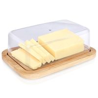 ✅ BAMBUSOWA - Podstawka maselniczki wykonana z naturalnego drewna bambusowego. Pokrywka wykonana z wytrzymałego, przezroczystego tworzywa.