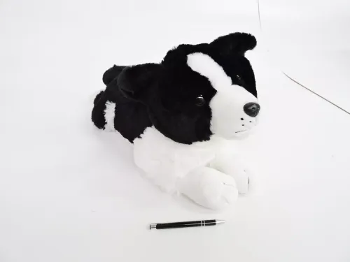 Maskotka pies Border Collie 60 cm, leżący będzie świetnym towarzyszem zabaw dla dziecka, a także przytulanką.