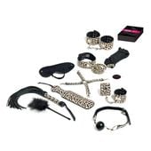 Pudełko zawiera wszystkie gadżety, które przydadzą się Wam do realizacji najskrytszych fantazji niczym z trylogii o Christianie Grey’u. W zestawie znajduje się: bat, knebel, packa, opaska na oczy, obroża, piórko, kajdanki na nadgarstki oraz kostki wraz z elementem umożliwiającym ich połączenie, lina i pas.