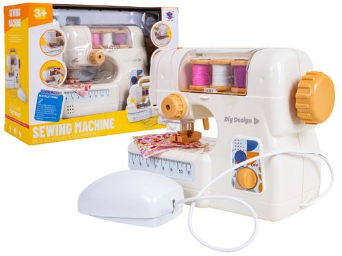 | Interaktywna maszyna do szycia z efektami dźwięku i światła dla dzieci od trzeciego roku życia. Zabawka wykonana z solidnych materiałów i bezpieczna dla dziecka. Maszyna posiada igłę w zabudowie, która zabezpiecza, przed skaleczeniem się dziecka. Zabawkę wyposażono w praktyczną myszkę uruchamiającą maszynę, pokrętło do podnoszenia igły i podnośnik stopki. Podczas pracy maszyny, świeci się światełko i słychać odgłosy szycia. W zestawie z maszyną znaleźć możemy również 3 szpulki nici i kawałek materiału. Zabawa maszyną wspomaga rozwój koordynacji wzrokowo-ruchowej i kreatywności. Maszyna zasilana jest bateriami typu 4 x 1,5V AA (brak w zestawie).