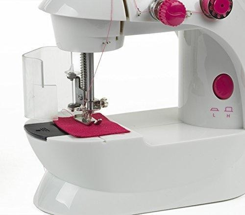 Prawdziwa maszyna do szycia przystosowana dla dzieci! Dzięki funkcjom normalnej maszyny, małej formie i specjalnej osłonie na palce zabezpieczającej przed skaleczeniem doskonale nadaje się do nauki szycia, wykonywania własnych projektów, a nawet do uszycia prawdziwych elementów garderoby. Atrakcyjny, nowoczesny wygląd zachęca do nauki i zabawy. Maszyna spełnia wszystkie wymagane normy bezpieczeństwa.