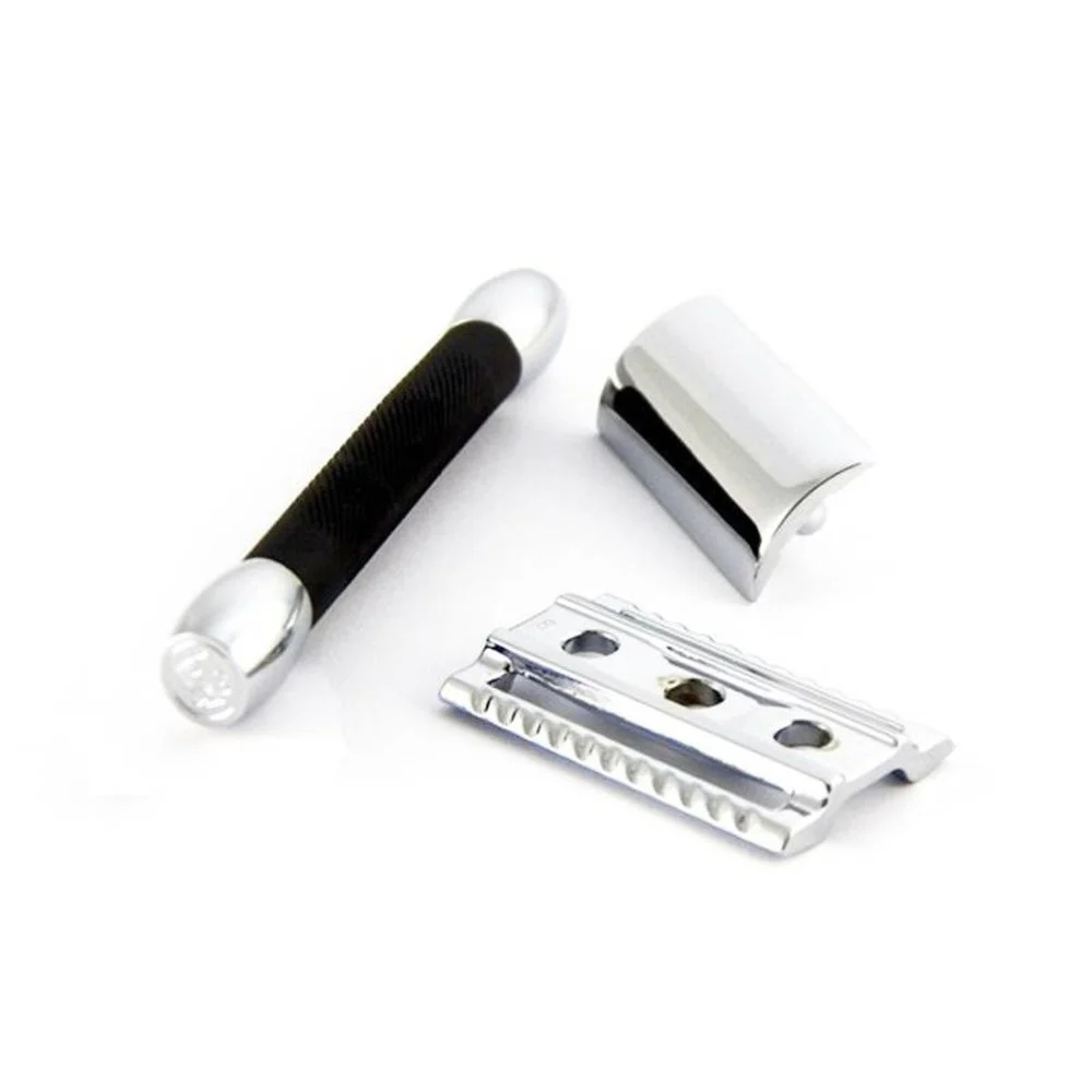 Merkur Safety Razor 30C to klasyczna maszynka do golenia, która wyróżnia się eleganckim, dwukolorowym designem. Połączenie czarnego aluminium z błyszczącym chromem nadaje jej stylowy wygląd, który z pewnością przyciągnie uwagę każdego mężczyzny ceniącego estetykę. Maszynka doskonale leży w dłoni, zapewniając pełną kontrolę podczas golenia. Odpowiednio wyważona konstrukcja umożliwia precyzyjne konturowanie zarostu, jednocześnie dbając o komfort użytkowania.