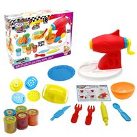 Wciel się w rolę szefa kuchni, tworząc, przy użyciu zabawkowej maszynki, własny, ciastolinowy makaron! W zestawie znajdują się kubeczki ze słodko pachnącą, kolorową ciastoliną, zabawkowe sztućce, zabawkowe naczynia, zabawkowy wałek oraz różne końcówki, zmieniające kształt wyciskanej ciastoliny. Na ściankach maszynki znajdują się foremki do stworzenia dodatków z ciastoliny, które urozmaicą zabawkowe danie.