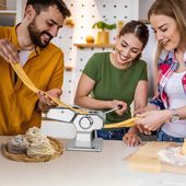 W zestawie z dodatkową krajarką wyposażoną w 3 różne ostrza z wytrzymałego tworzywa, maszynka pozwala na tworzenie nie tylko klasycznych rodzajów makaronu, ale także dekoracyjne wycinanie ciasta i precyzyjne cięcie płatów do lasagne. To kompleksowe rozwiązanie dla każdego entuzjasty włoskiej kuchni.