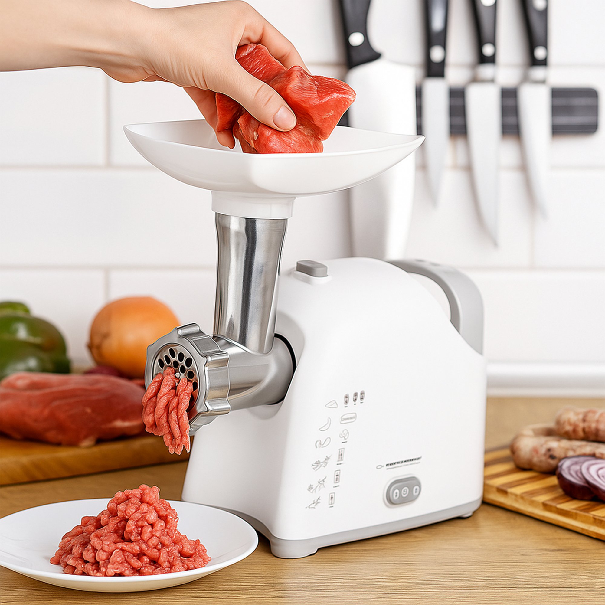 ✅ Wszechstronne zastosowanie – funkcja "maszynka do mielenia" umożliwia mielenie mięsa i innych produktów spożywczych, a dodatkowe nasadki pozwalają na robienie kiełbasy czy kebbe.