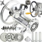 Ta solidna maszynka do mielenia mięsa wyróżnia się precyzyjną konstrukcją i niezawodnym mechanizmem, który gwarantuje efektywne mielenie każdego rodzaju mięsa. Z trzema sitkami o różnych rozmiarach oczek (3mm, 5mm, 8mm) oraz trzema nadziewarkami do kiełbasy (13mm, 17mm, 19mm), umożliwia precyzyjną obróbkę składników, zapewniając idealną teksturę i jakość potraw.