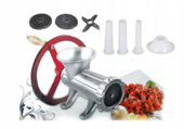 ✔️ Wszechstronność – możliwość napędu ręcznego lub elektrycznego oraz przystosowanie do produkcji mielonego mięsa i kiełbas.