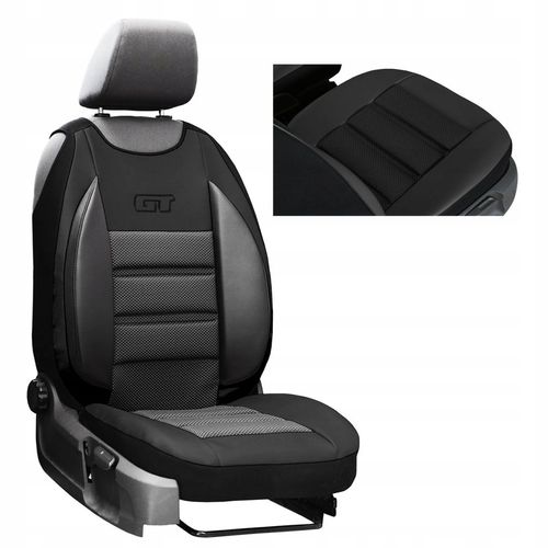 Mata tłoczona GT ERGONOMIC to idealny produkt dla wszystkich kierowców ceniących sobie wygodę podczas długich podróży. Dzięki zastosowaniu dodatkowych, bocznych poduszek w oparciu, mata zapewnia jeszcze większy komfort podczas podróżowania. Atrakcyjność tego produktu polega na zestawieniu specjalnie dostosowanych tłoczeń wykonanych z grubej pianki tapicerskiej, połączonych z mocnym materiałem tapicerskim o ciemnym wzorze. Boki maty wykonano z wysokiej jakości ekoskóry. Na środku maty zastosowano stylowy haft GT wykonany techniką komputerową. Matę można stosować do foteli wyposażonych w kieszenie, stoliki, podłokietnik oraz boczne poduszki powietrzne. Mata przeznaczona na fotele standardowe przednie (nie pasuje na fotele kubełkowe, ani do foteli drugiego i trzeciego rzędu).