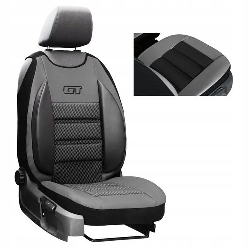 Mata tłoczona GT ERGONOMIC to idealny produkt dla wszystkich kierowców ceniących sobie wygodę podczas długich podróży. Dzięki zastosowaniu dodatkowych, bocznych poduszek w oparciu, mata zapewnia jeszcze większy komfort podczas podróżowania. Atrakcyjność tego produktu polega na zestawieniu specjalnie dostosowanych tłoczeń wykonanych z grubej pianki tapicerskiej, połączonych z mocnym materiałem tapicerskim o ciemnym wzorze. Boki maty wykonano z wysokiej jakości ekoskóry. Na środku maty zastosowano stylowy haft GT wykonany techniką komputerową. Matę można stosować do foteli wyposażonych w kieszenie, stoliki, podłokietnik oraz boczne poduszki powietrzne. Mata przeznaczona na fotele standardowe przednie (nie pasuje na fotele kubełkowe, ani do foteli drugiego i trzeciego rzędu).