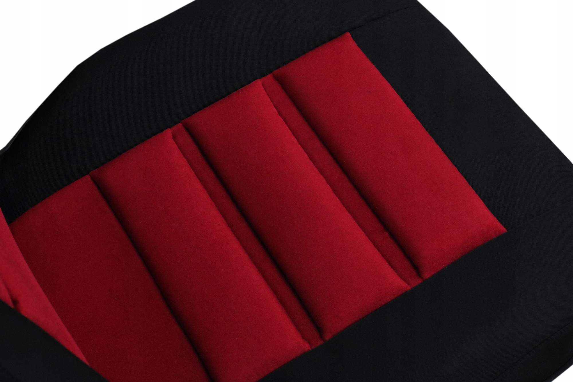MATERIAŁ WYKOŃCZENIOWY (boki maty) - dzianina tapicerska w kolorze czarnym charakteryzuje się elastycznością oraz podwyższoną odpornością na ścieralność oraz zużycie. Struktura materiału pozwala na lepsze dopasowanie pokrowców do oryginalnej tapicerki.