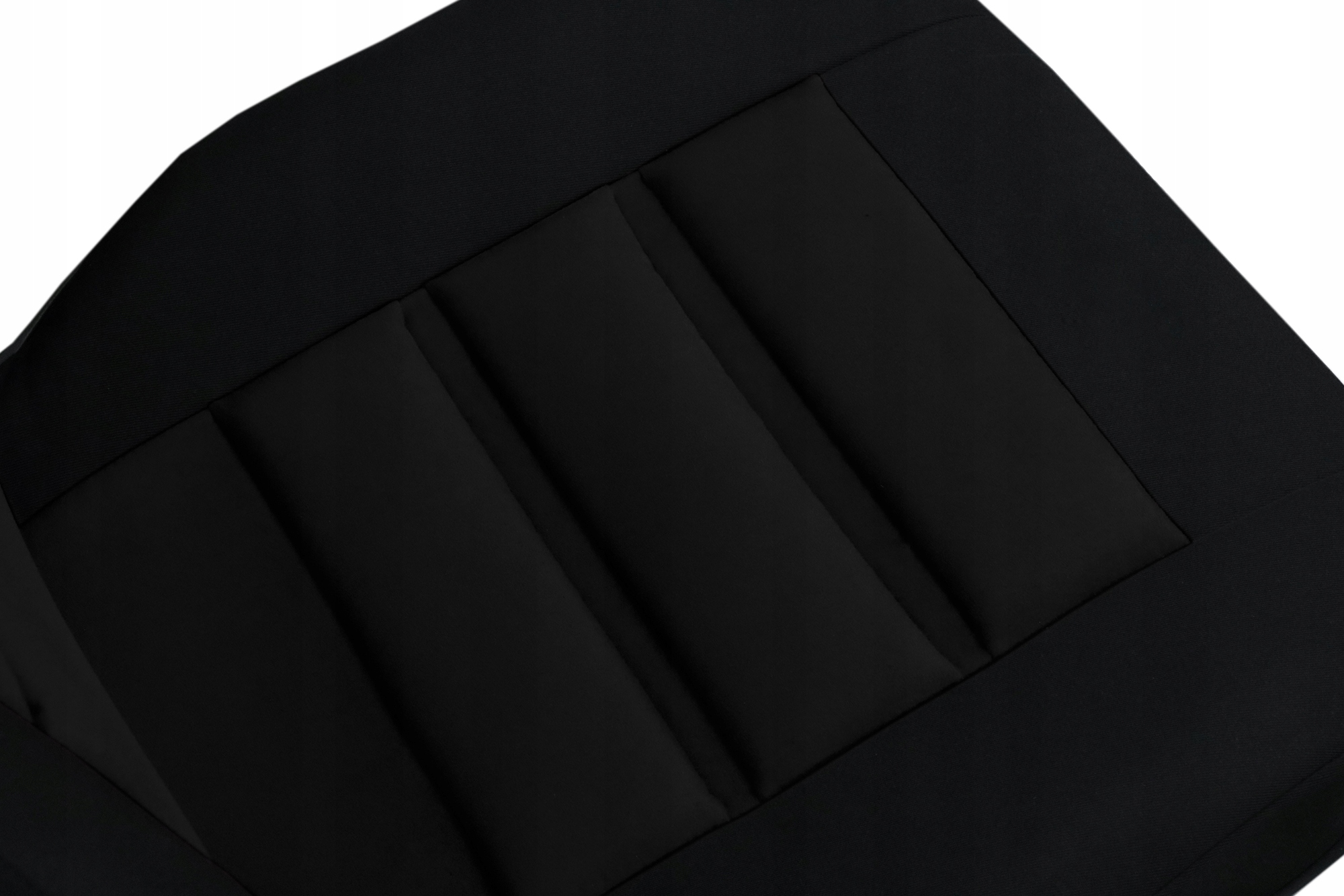 MATERIAŁ WYKOŃCZENIOWY (boki maty) - dzianina tapicerska w kolorze czarnym charakteryzuje się elastycznością oraz podwyższoną odpornością na ścieralność oraz zużycie. Struktura materiału pozwala na lepsze dopasowanie pokrowców do oryginalnej tapicerki.