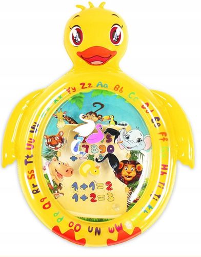 Mata z 6 kolorowymi pływającymi zabawkami. Gdy dziecko naciśnie i próbuje je chwycić, zabawka przesuwa się z miejsca na miejsce.