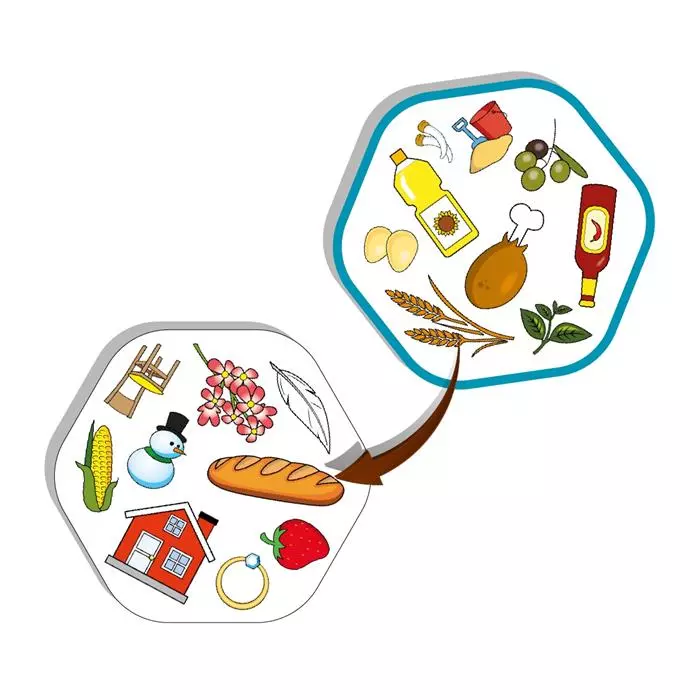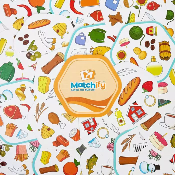 Gra „Matchify MadeOf” pomaga dzieciom zrozumieć z czego wykonane są różne przedmioty, które spotykają w codziennym życiu. Jest prosta, ale wciągająca. To doskonała okazja do wspólnej zabawy, rozwija spostrzegawczość, refleks i zmysł obserwacji. Pobudza ciekawość najmłodszych i zachęca do zadawania pytań. Gra „Matchify MadeOf” zawiera dwie talie kart, na każdej znajduje się 9 symboli. Każda karta z pierwszej talii zawiera jeden symbol, który można dopasować do innego symbolu z dowolnej karty w drugiej talii. Na przykład chleb można dopasować do pszenicy, bo jest z niej zrobiony, a sweterek pasuje do wełny.