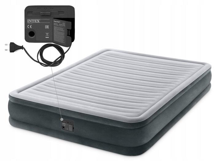 Materac Air Bed Comfort-Plush marki Intex to świetny wybór dla osób szukających komfortowego miejsca do odpoczynku dla siebie lub gości, które można łatwo napompować, wypompować i przetransportować. Jego wymiary sprawiają, że jest w stanie wygodnie pomieścić dwie osoby, zapewniając im odpowiednią przestrzeń do komfortowego wypoczynku. Materac posiada wystawiony przez producenta certyfikat AirLock, co oznacza, że został przetestowany pod kątem szczelności zanim opuścił fabrykę.