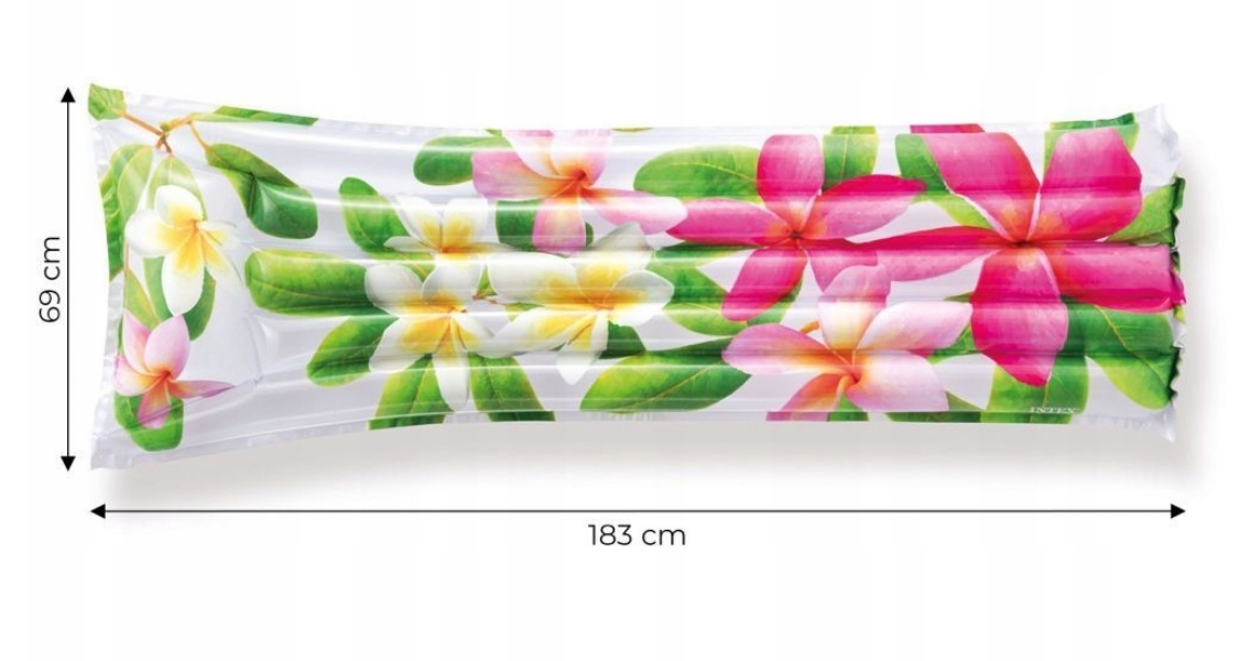 Wypoczynek nad wodą daje dodatkową radość dzięki dmuchanemu materacowi. Jego zaletą jest wygodne oparcie z zagłówkiem. Materac jest wykonany z odpornego na uszkodzenia materiału PVC. Jego elastyczność dodatkowo amortyzuje uderzenia i tym samym zmniejsza ryzyko przedziurawienia. Ciekawe, kolorowe wzornictwo zwraca uwagę i pozwala na szybką lokalizację materaca. Łatwe nadmuchiwanie umożliwiający zawór powstrzymujący uciekające powietrze