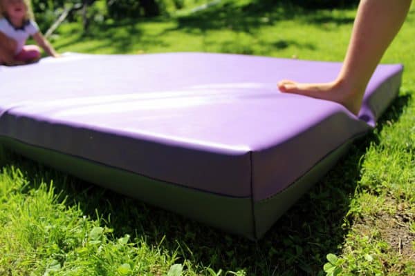 Materac gimnastyczny w obszyciu materiałem PCV skóropodobnym łatwo zmywalnym.