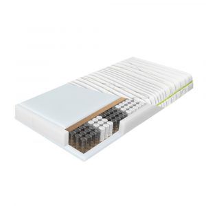 Sprężyna kieszonkowa - system cylindrycznych sprężyn, z których każdą zamknięto w kieszonce ze specjalnej tkaniny. Sprężyny nie łączą się ze sobą, dzięki czemu każda z osobna pracuje na idealne podparcie i jakość snu. Przekładka kokosowa - zwiększa wentylację wkładu oraz zapewnia stabilne podparcie. Jest naturalna i bezpieczna dla alergików, jednocześnie zapewniająca zwiększenie wytrzymałości i twardsze podłoże. Pianka komfort - zapewnia elastyczność punktową oraz zwiększa komfort użytkowania. Siedem stref twardości - materac posiada 7 zróżnicowanych stref twardości, które umożliwiają optymalne dopasowanie się jego wkładu do budowy anatomicznej użytkownika, zapewniając doskonale podparcie dla kręgosłupa w czasie snu.
