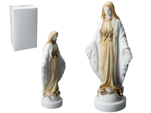 Figurka Matki Boskiej, zapakowana delikatnie i starannie, doskonale nadaje się na prezent dla bliskiej osoby lub jako ozdoba do własnego domu. Jej wykonanie z najwyższą precyzją i starannością wyróżnia ją spośród innych dewocjonaliów. Sprawi, że każdy dzień rozpocznie się od momentu skupienia i zadumy nad pięknem jej wykonania oraz głębokim znaczeniem, jakie niesie ze sobą.
