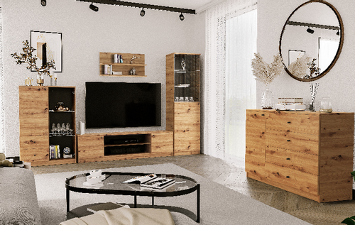 MEBLOŚCIANKA ELIZA SYSTEM E to idealne rozwiązanie dla osób, które pragną wzbogacić swoje wnętrza o estetyczne i funkcjonalne meble. Ta wyjątkowa kolekcja, wykonana z wysokiej jakości płyty meblowej, zapewnia nie tylko trwałość, ale również stabilność, którą doceni każdy użytkownik. Dzięki prostej, klasycznej formie oraz naturalnej kolorystyce w odcieniu dębu artisan, meble z tej kolekcji doskonale wkomponują się zarówno w nowoczesne, jak i tradycyjne aranżacje.