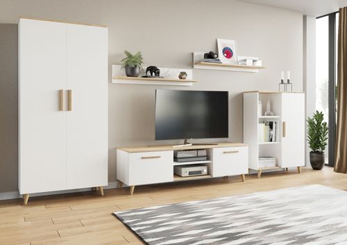 Meblościanka Nord do salonu to idealne rozwiązanie dla osób poszukujących harmonii między funkcjonalnością a estetyką. Jej minimalistyczny design, inspirowany skandynawskim stylem, wprowadza do wnętrza przytulną atmosferę, jednocześnie zachowując surowość formy, która nigdy nie wychodzi z mody.