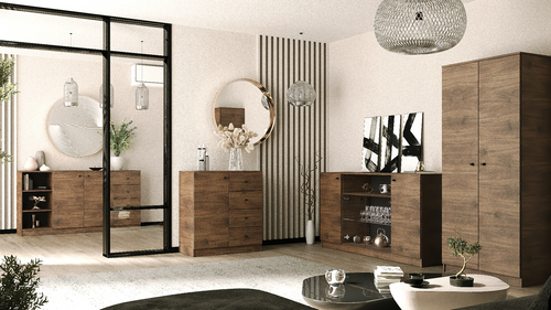 Meblościanka WIKI II SYSTEM W to coś więcej niż tylko mebel – to serce Twojego mieszkania. Doskonale wkomponuje się w różnorodne aranżacje, od skandynawskiego po nowoczesny styl. Dzięki przemyślanej konstrukcji, zyskujesz przestrzeń na wszystkie swoje ulubione przedmioty oraz dokumenty, a jednocześnie zachowujesz ład i porządek w swoim domu.