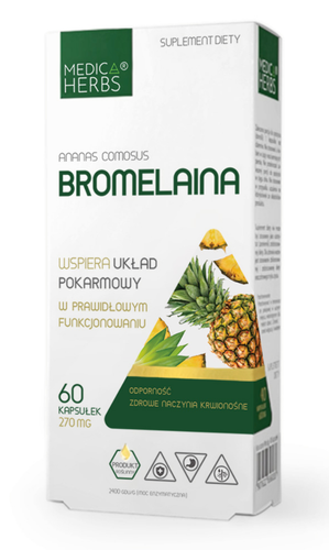 Medica Herbs Bromelaina 60 kapsułek to suplement diety stworzony z myślą o osobach, które pragną wprowadzić do swojej suplementacji sprawdzone źródło bromelainy – substancji znanej z wyjątkowych wszechstronnych właściwości.