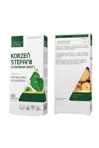 Suplement diety Medica Herbs Korzeń Stefanii 60 kapsułek to produkt bez dodatku sztucznych wypełniaczy który dostarcza naturalny ekstrakt z korzenia Stefanii, zawierający wiele substancji czynnych stosowanych w praktykach chińskiej kultury.