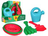 Wymiary | - składane wiaderko ok. 23 cm x 3,5 cm (złożone) i ok. 23 cm x 14,5 cm (rozłożone), - łopatka ok. 20 cm x 9 cm, - grabki ok. 19,5 cm x 9 cm, - konewka ok. 14,5 cm x 14,5 cm, - opakowanie ok. 25,8 cm x 32,5 cm x 9 cm, |