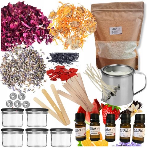 Ten kompletny zestaw do robienia świec sojowych zawiera 100% naturalny wosk sojowy z certyfikatem NoGMO oraz wszystkie niezbędne akcesoria do stworzenia 5 profesjonalnych świec zapachowych. Wysokiej jakości komponenty, w tym stalowy pojemnik do topienia wosku, naturalne olejki zapachowe w ochronnych brązowych butelkach szklanych oraz starannie wyselekcjonowane suszone kwiaty, gwarantują wyjątkowe rezultaty.